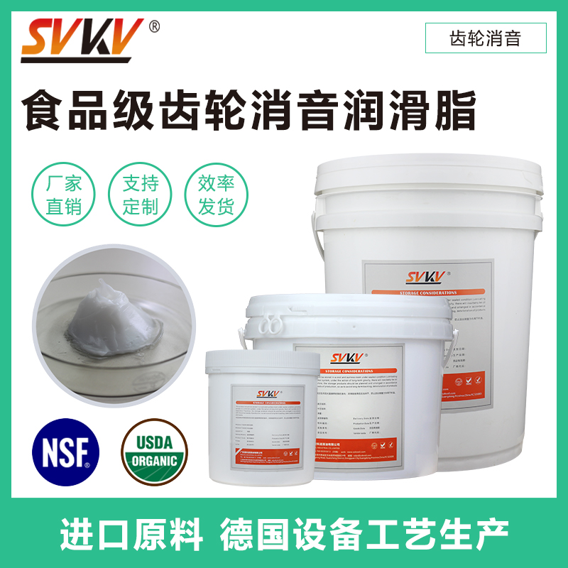 SVKV食品級齒輪消音潤滑脂針對苛刻的工作環境能有效降低噪音,減少機械產品的磨損、延長其壽命并降低維護頻率。