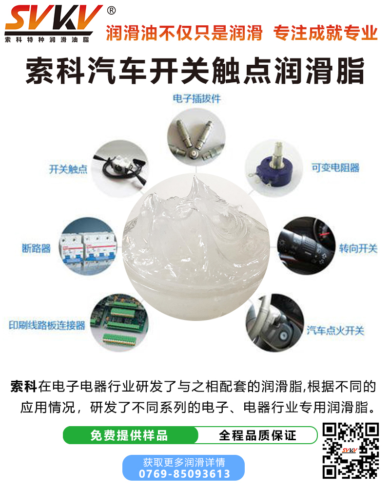 索科SVKV汽車開(kāi)關(guān)觸點(diǎn)潤(rùn)滑脂性能優(yōu)點(diǎn):