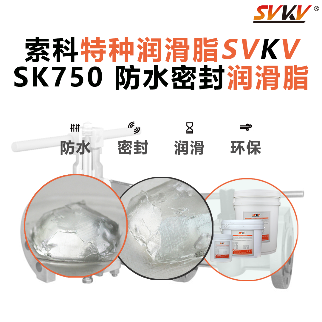 推薦索科SVKV SK750系列防水密封潤滑脂。是由高分子聚有機硅氧烷稠化高純度無機稠化劑,并添加抑制氧化、抑制腐蝕和結構改善劑精制而成的食品級密封潤滑脂。