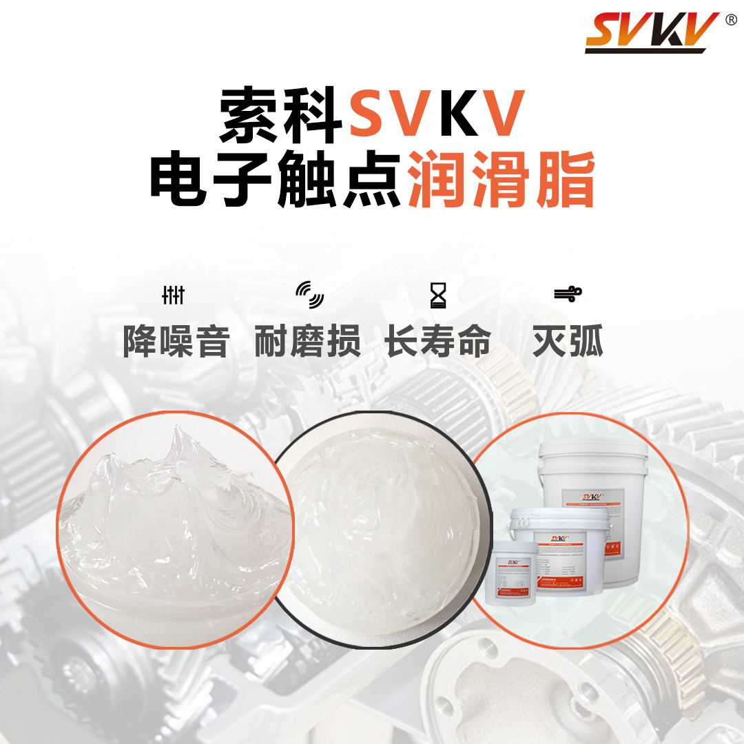 索科SVKV SK906系列電子觸點潤滑脂由無機皂稠化非矽酮類合成油加超導電添加劑?抗氧化劑等精煉而成。可以降低摩擦力,提高電流通過開關和連接露金屬界面的電子性能,在點閉合時形成超薄膜層的油膜,由于“量子賦道效應”電流可以很順暢通地流過,而斷開后變成厚膜時的觸點潤滑脂是絕緣的,可以防止漏電。唯能產品主要用于保護開關或連接器中護金及其它貴金屬表面不受外界條件的侵蝕。此潤滑保護劑可以在金屬表面形成一層保護膜,這層薄膜可以減少接觸磨損,防潮、防腐蝕、防鹽霧,穩定接觸電阻和增強導電性能。